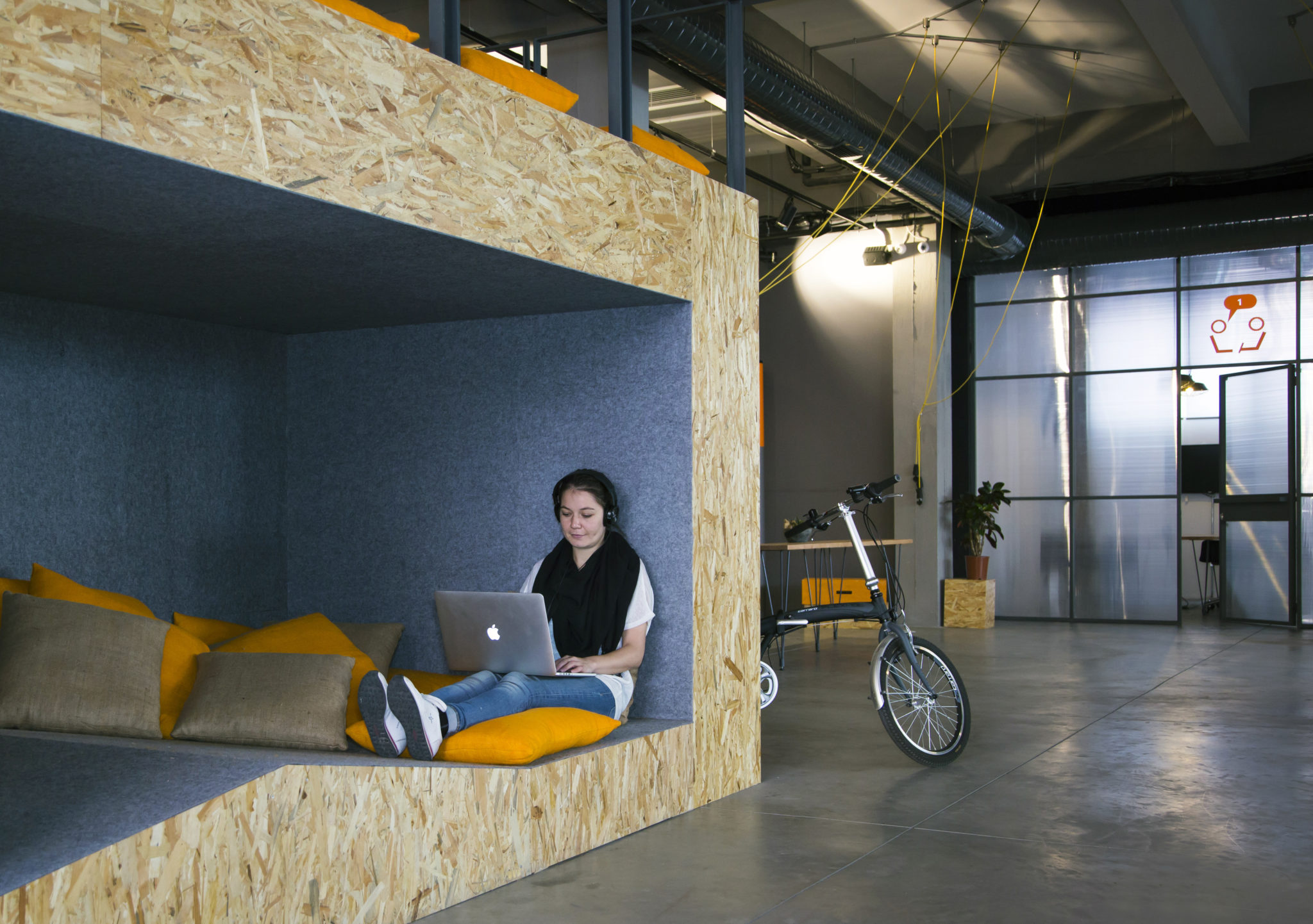 Volete sdraiarvi per trovare la giusta ispirazione? Qui potete. Avete bisogno di un ufficio riservato? Ce ne sono 12, che variano dai 10 ai 18 mq.