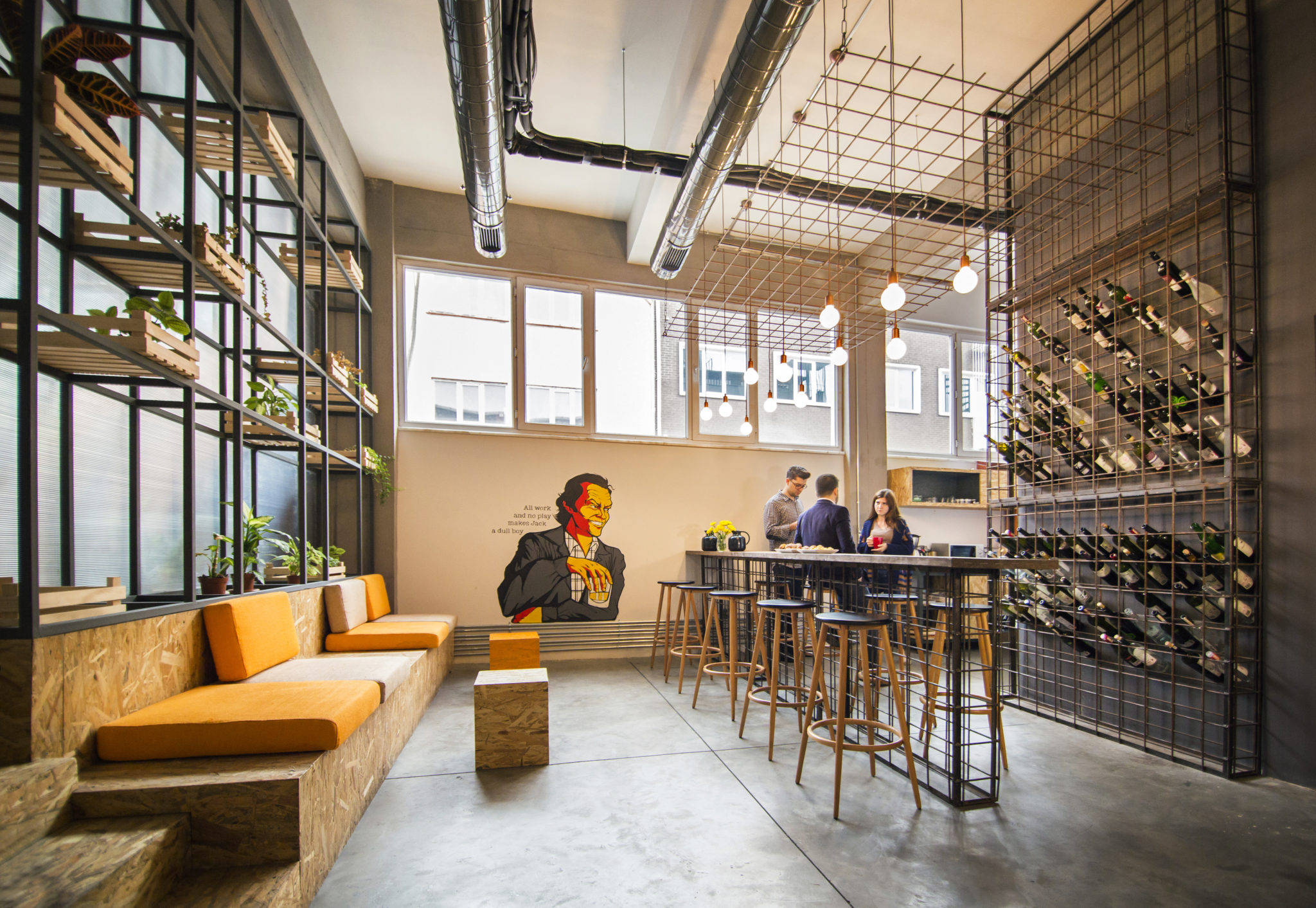 Gli architetti dello studio PAB hanno progettato questo spazio per uffici in modo assolutamente innovativo. Non il solito ufficio dove lo spazio della cucina è nascosto. Basta con il solito schema lavorativo: le care vecchie 8 ore lavorative, modello signorina Silvani, sono un po’ superate.