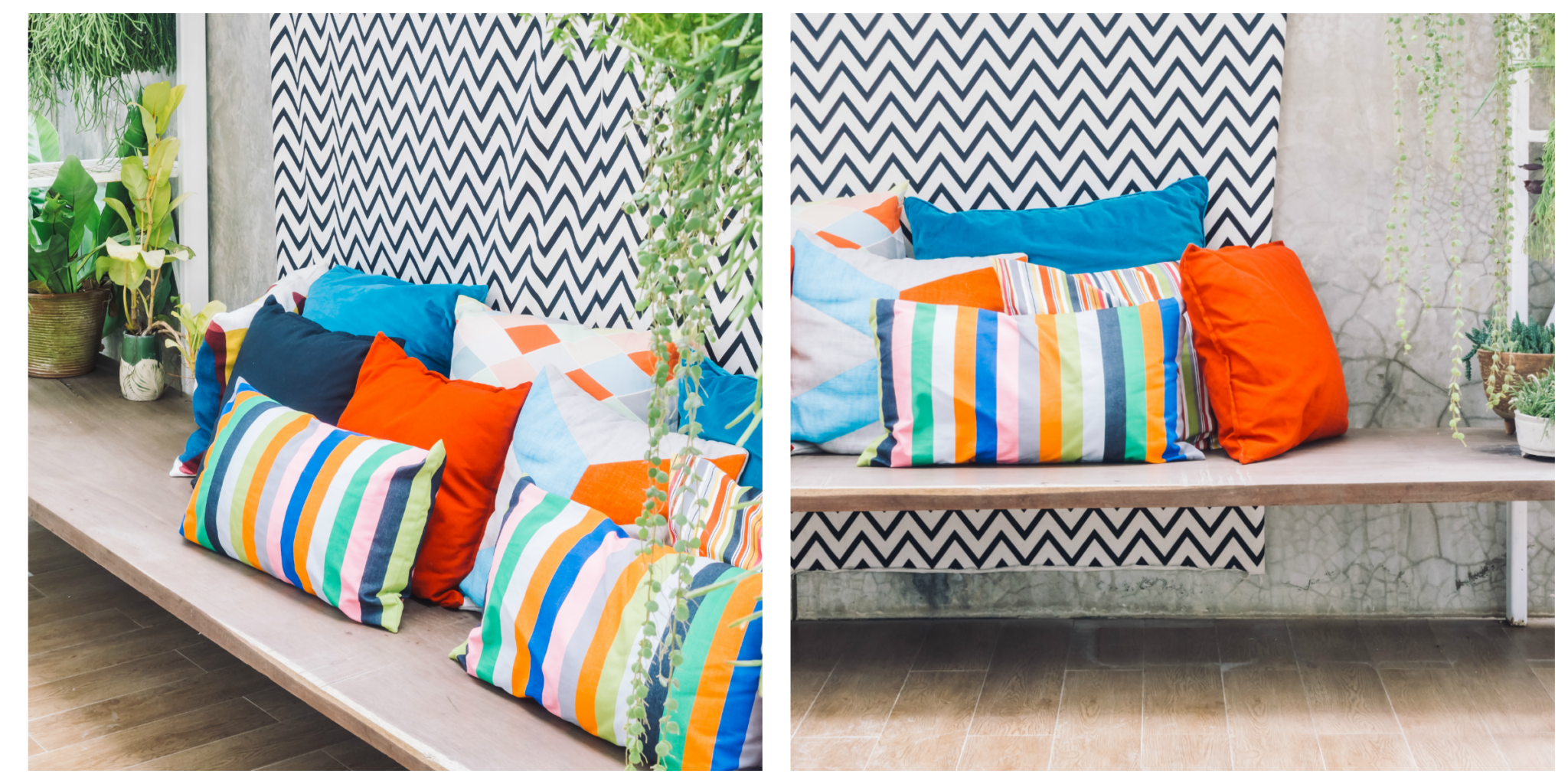 Allora sfruttateli! Trovate delle panche (magari contenitore) o dei pouf che potrete incastrare in questi angoli quando non usati. Al momento della festa si trasformeranno in sedie di emergenza e tavolini da caffè. Noi vogliamo fare lo stesso con un angolo (anche un po’ irregolare) del nostro balcone.