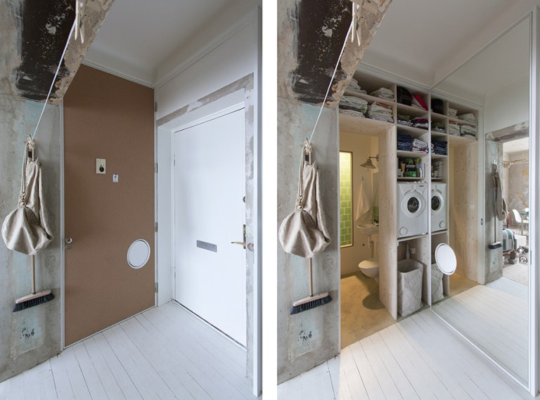 Ci spostiamo a Stoccolma, in una casa di soli 36 mq ristrutturata da Karin Matz. Poco spazio ma mille le richieste del cliente: un appartamento con tutte le comodità e una grande doccia, possibilità di movimento e di divisione degli spazi in base alle esigenze. E ancora, cabine armadio, spazi generosi, luminosi e ariosi e ovviamente un progetto low-cost.