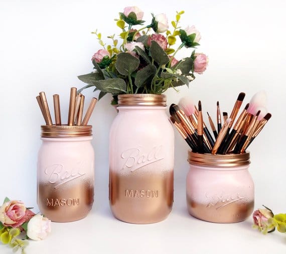 Continuiamo con degli accessori per casa che secondo me sono irresistibili. Cominciamo con questi barattoli decorati in color rame, così attuale. Perfetti per contenere trucchi e pennelli, ma anche fiori, danno quel tocco di raffinatezza ricercata.